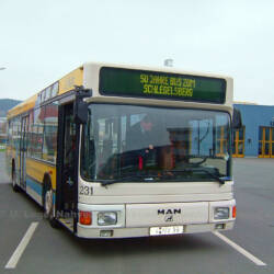 - Bus 231 mit Sonderfahrt-Zielanzeige im Betriebshof Burgau am 09.04.2003