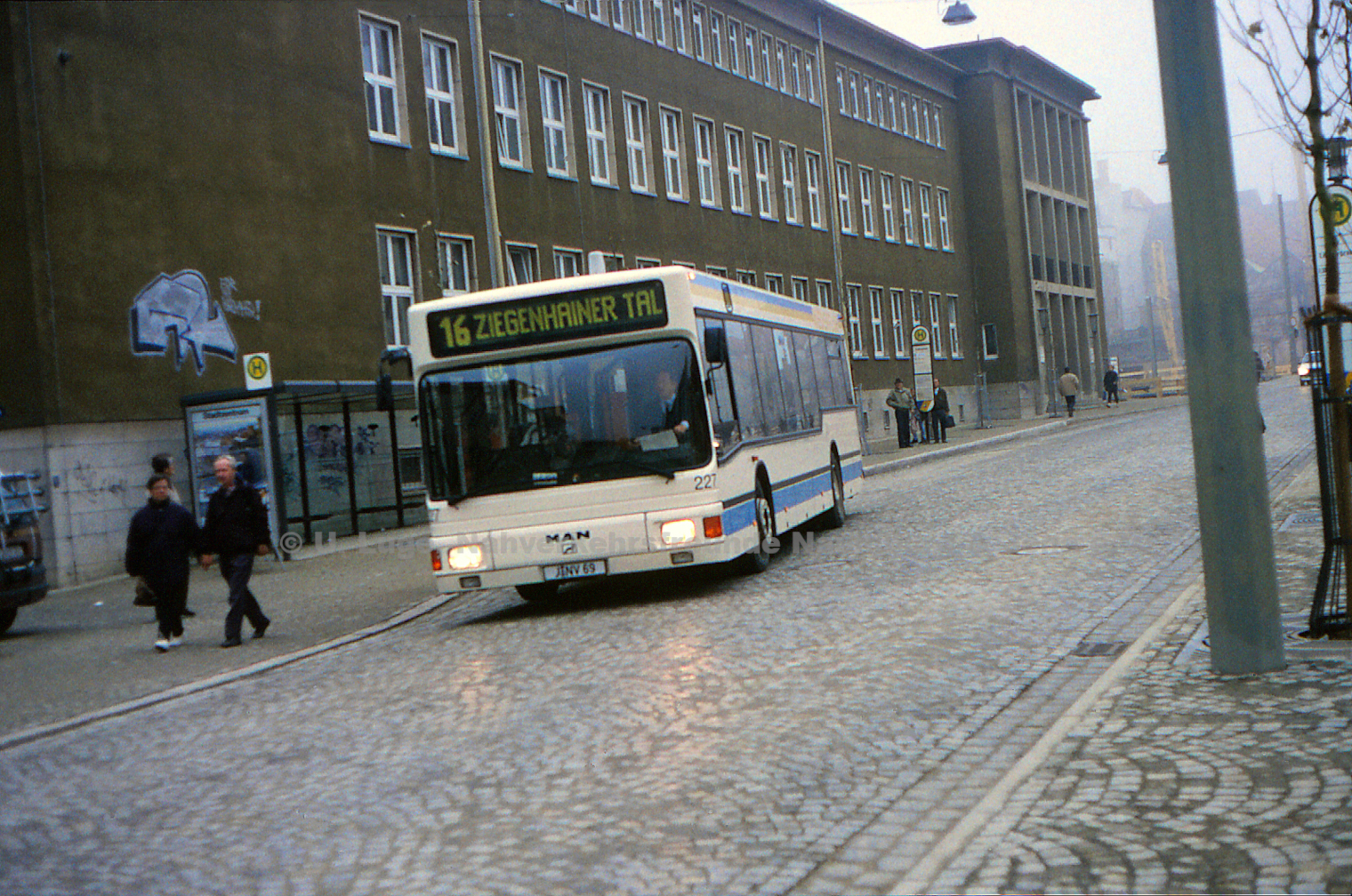 - Bus 227 auf OL 16 bei Abfahrt am Löbdergraben am 11.11.1997