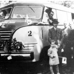 Bus 2II Zeige grösseres Bild IFA H3B Baujahr 1950 Inbetriebnahme um 1950, pol. Kennzeichen 1950: ST 22-1247, um 1958 ausgemustert Bus 2II geschmückt für Maifeier um 1951 2025-11-12T20:47:27+00:00