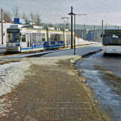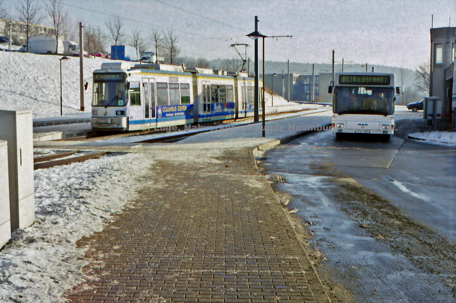 - Bus 315II in Lobeda-Ost neben Tw 608 am 13.01.1997