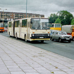 - Bus 7802/87 auf der Paradiesbrücke, dahinter 7802/94 am 05.07.1990