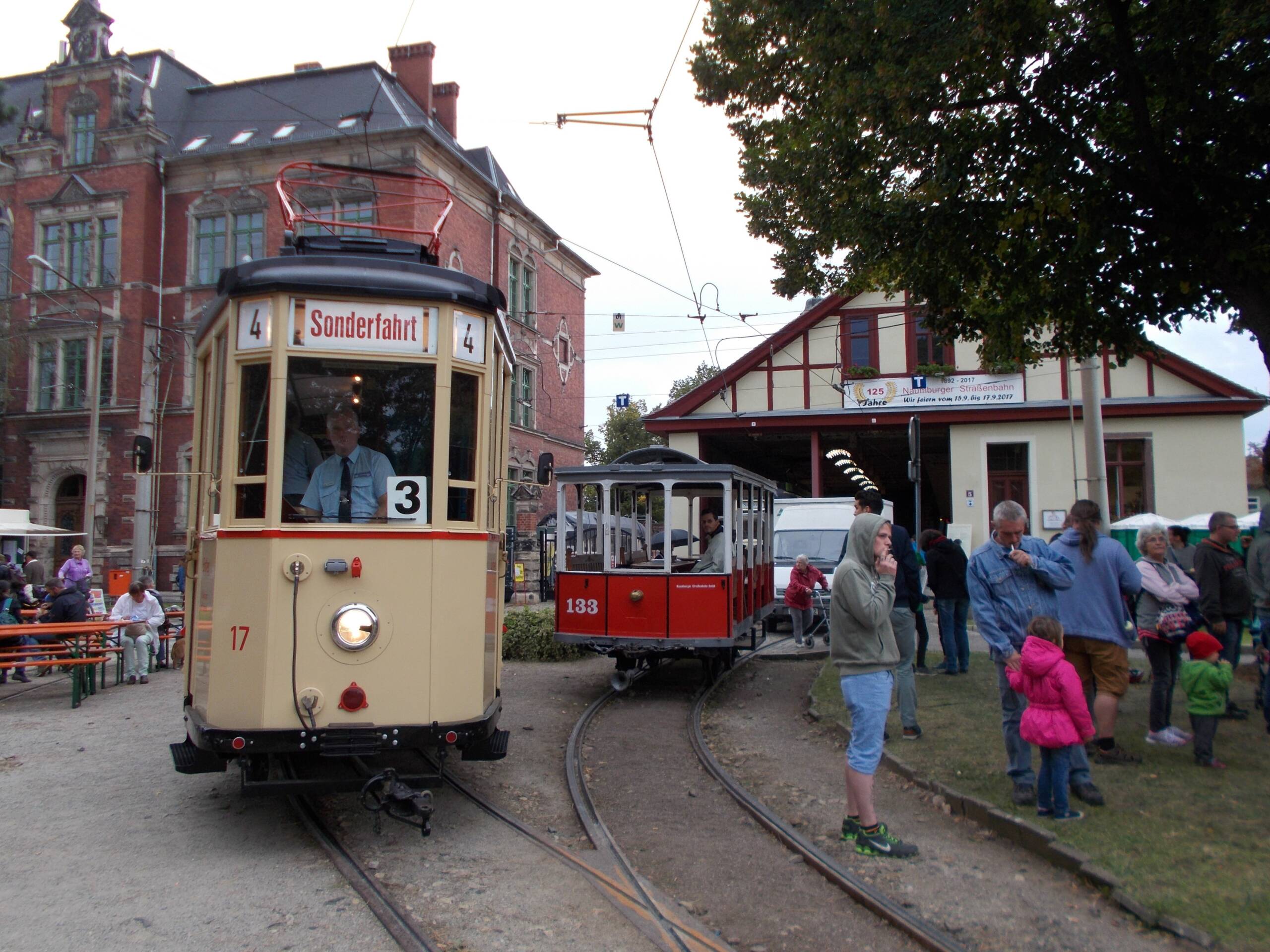 stellten sich Tw 17, 29 und der Reko Zug zur einer kleinen Wagenausstellung zwischen Theaterplatz und Vogelwiese auf. Um 11.15 Uhr fuhren die Wagen als Korso zum Hauptbahnhof